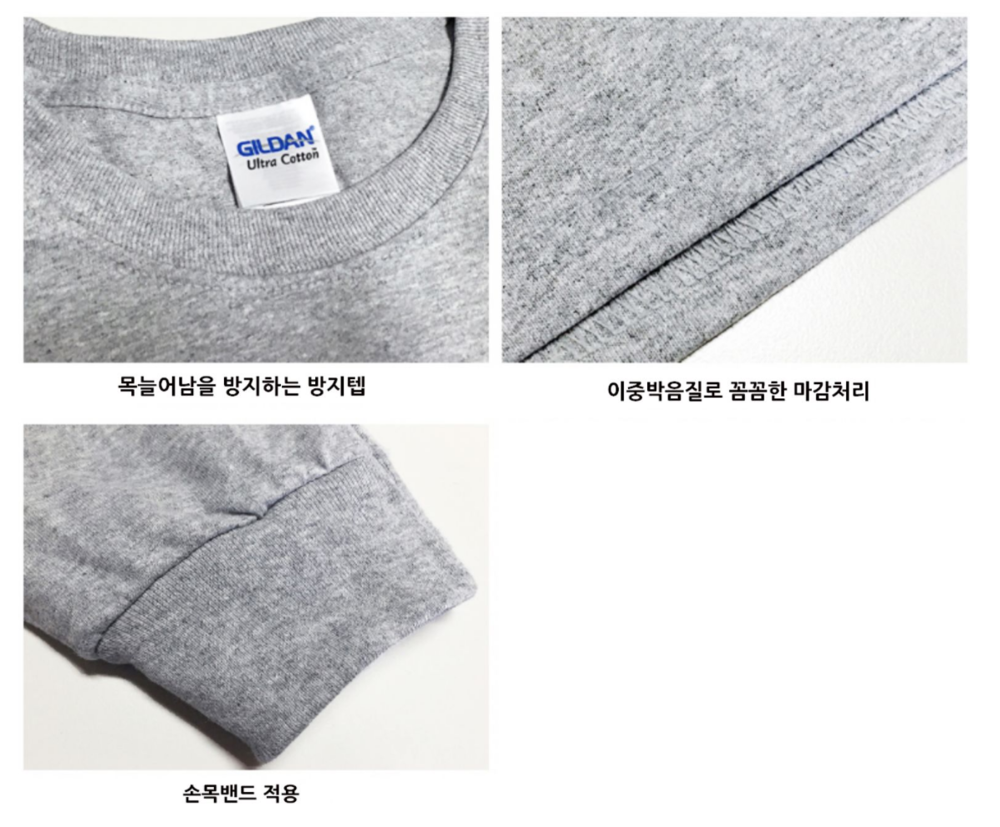 길단 2400 긴팔 라운드 티셔츠로 제작하였습니다.목, 어깨 라인을 헤리 처리하여 늘어짐을 방지합니다.소매 부분 밴딩 처리로 활동에 용이합니다